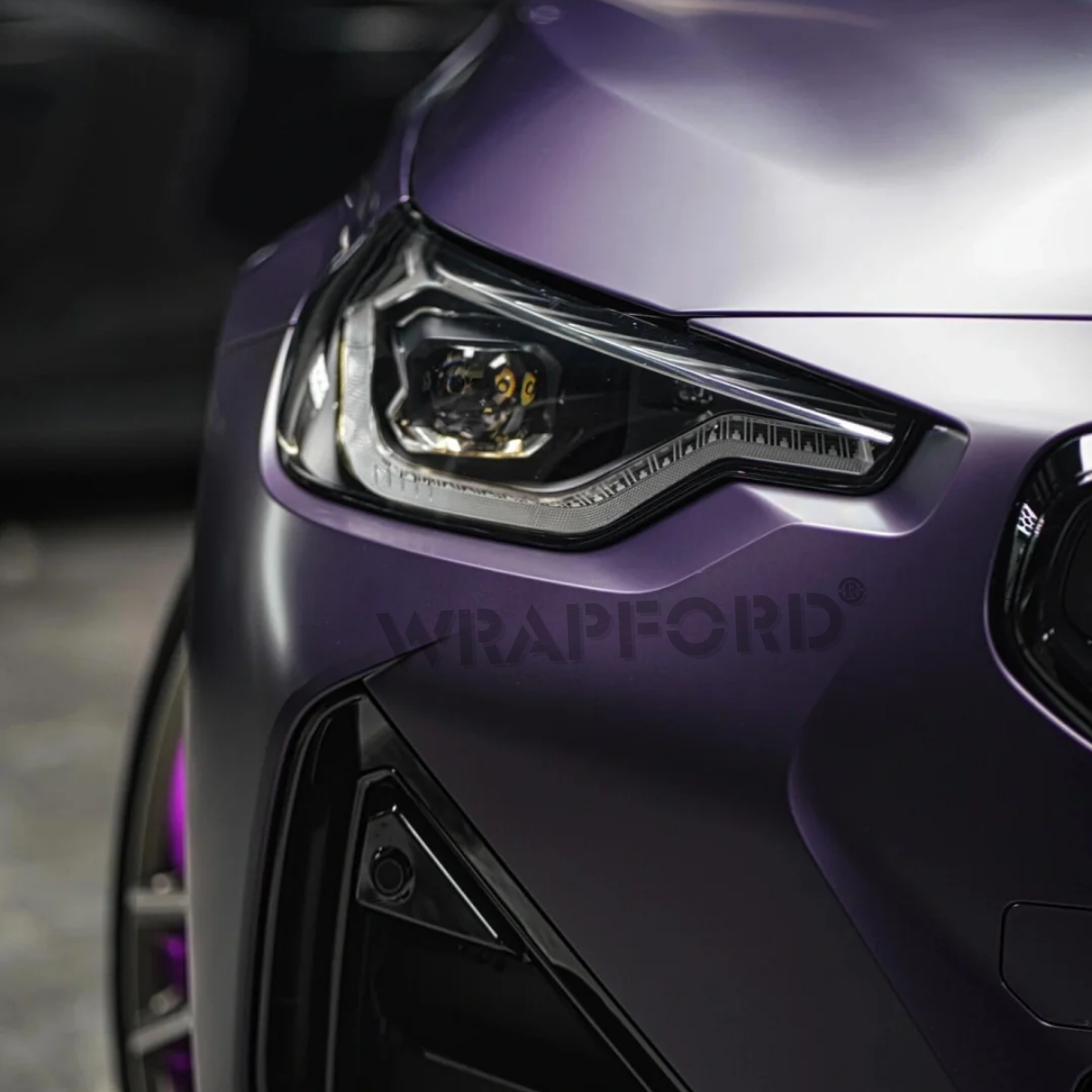 WRAPFORD Matte Metallic Midnight Purple TPU PPF enveloppe votre véhicule d'un violet profond et captivant, aux subtils reflets métalliques qui se révèlent selon la lumière. La surface mate adoucit les reflets, offrant une finition veloutée à faible brillance qui met en valeur les contours, les arêtes et les transitions de panneaux avec précision. L’effet global est une apparence sophistiquée OEM+ qui évoque le mystère, le raffinement et une puissance discrète.